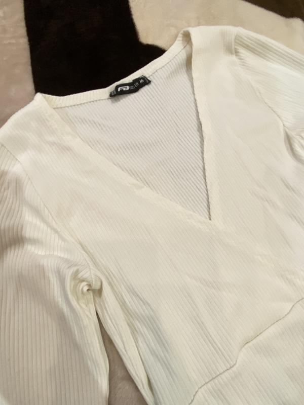 біла укорочена кофта рубчик з довгими рукавами і v образним вирізом, одягала пару разів. Об -36 см Довжина - 45 см Рукав - 62 см