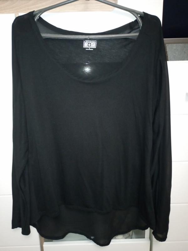в идеальном состоянии на плечах и рукавах вставки шифона и по низу спины, спинка удлинена рукав от шеи реглан 73 под руками 50 и тянется красиво низ 63 длина до 50 зад 70