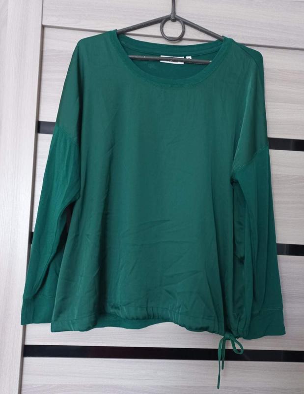 Гарна легка кофтинка,низ затягується шнурком,основна тканина трикотаж,спереді тонка шовковиста тканина.Гарна якість,насичений колір,стан дуже добрий,розмір 44-46