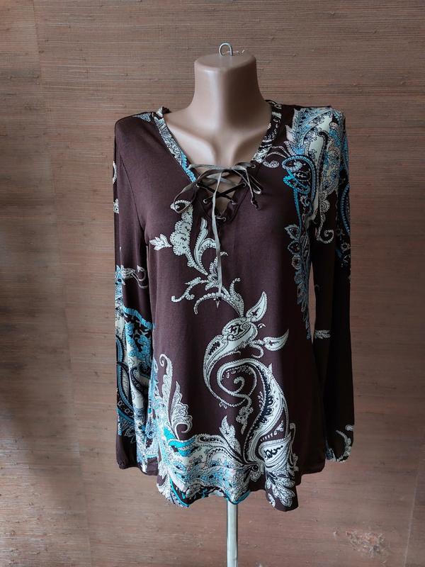🧡🩵💛 вишукана блузка принт турецький візерунок з перепльотами