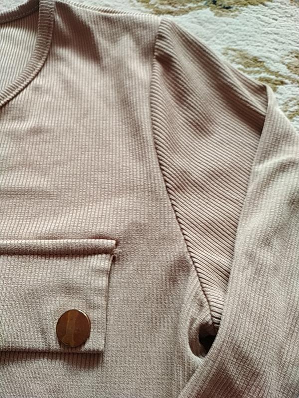 Бежева кофтинка в рубчик з металевими гудзиками.Камера колір не передала.В реалі насичений беж.Д 57 Ш 42 Плечі 37 Д рукава 62Гарно тягнеться