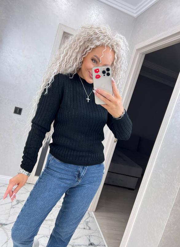 Светрик Модель 5046 Склад: 30% акрил; 70% вовна. Розмір 42-48 (універсальний) мод) На дотик дуже тоненький та приємний до тіла Кольори: пудра, молоко, чорний, сірий, шоколад Заміри виробу: Довжина светрика 60-65см. Довжина рукава 62-64 см. Обʼєм 44-50см.