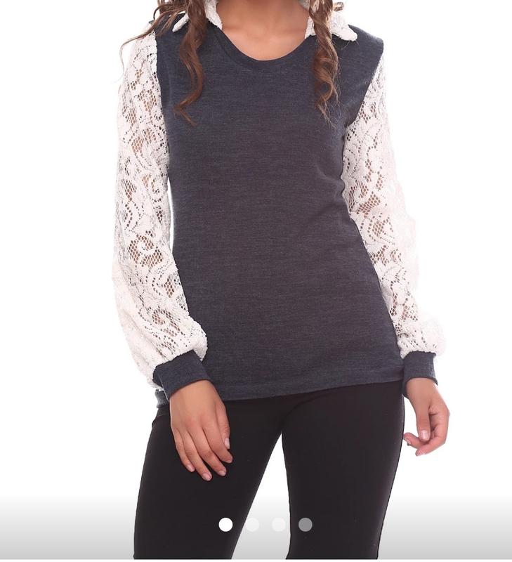 Дуже гарна кофта-блуза, м'якиц трикотаж з поєднанням кружевних рукавів. Елегантна,та красива 46 розміру.Кольор сіраз отливом морскої хвилі...