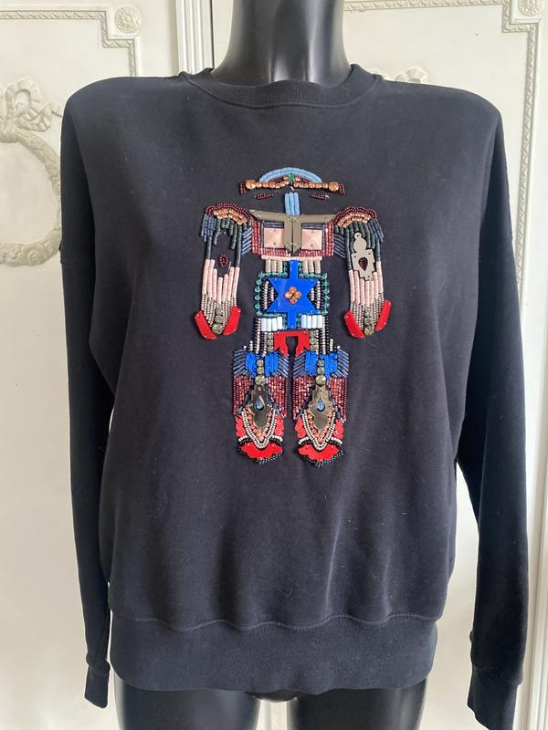 Якісний теплий реглан від MSGM. Колір чорний, декор -паєтки, намистини, кристали. Бірка з розміром і складом зрізана. Заміри: довжина-60 см, ПОГ-56 см, ПОБ-44 см, рукав від ворота-74 см.
