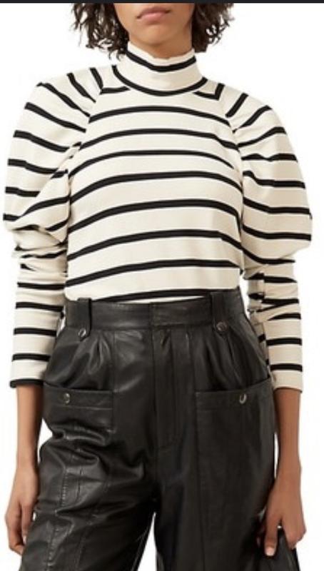 Лонгслів,,реглан Gestuz з акцентними плечами рукавами.Актуальна смужка,не високий ворот,стан нової речі. Довжина 58 ПОГРУДИ 47 Рукав від горловини 70 Ціна на речі Gestuz від 150€ Рекомендую 🔥
