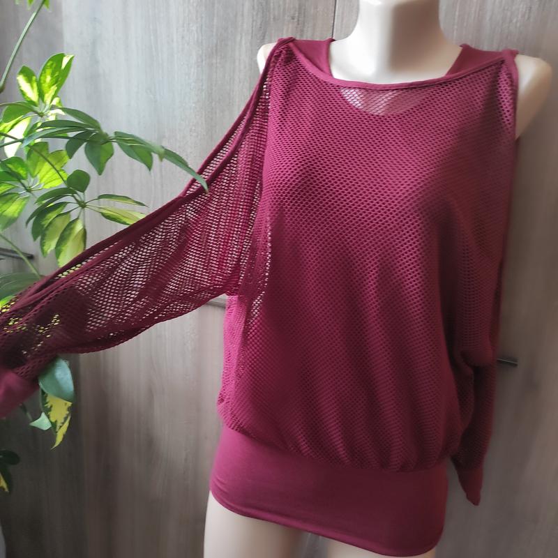 Цікава кофтинка в ідеальному стані, всередині трикотажна маєчка з натурального трикотажу, зверху сіточка-поліестер, дві речі прошиті по низу- зручний і стильний фасон; ПОГ- 46 довжина-64 рукав від вирізу-67