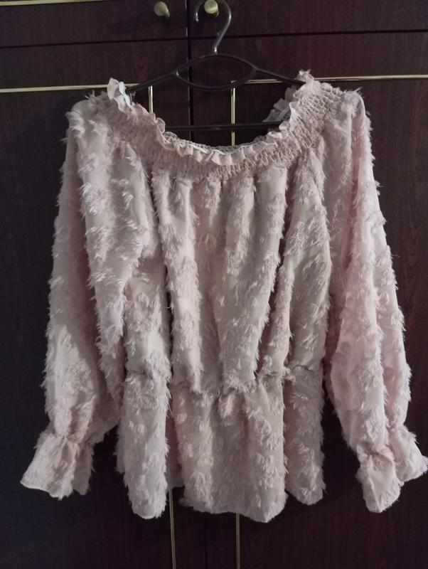 Блуза в пудрових відтінках, по талії на різінці, з рукавами, тканина полієстер Напівоб'єм грудей - 52 Довжина - 62