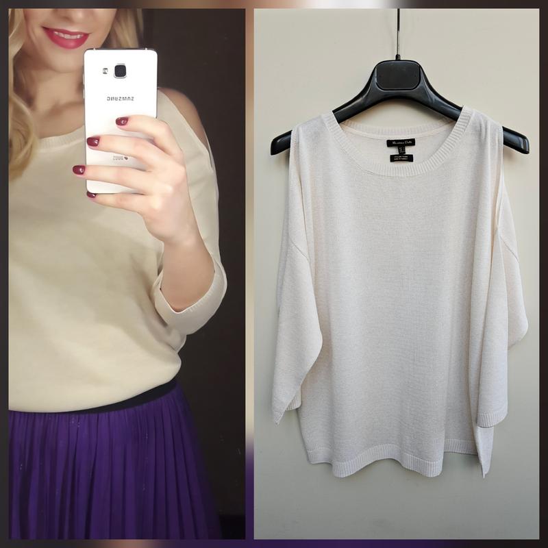 Кофта Massimo dutti молочна з вирізами на плечах. Розмір S Дуже ніжна і гарна, стан нової. Нитка трохи металізована