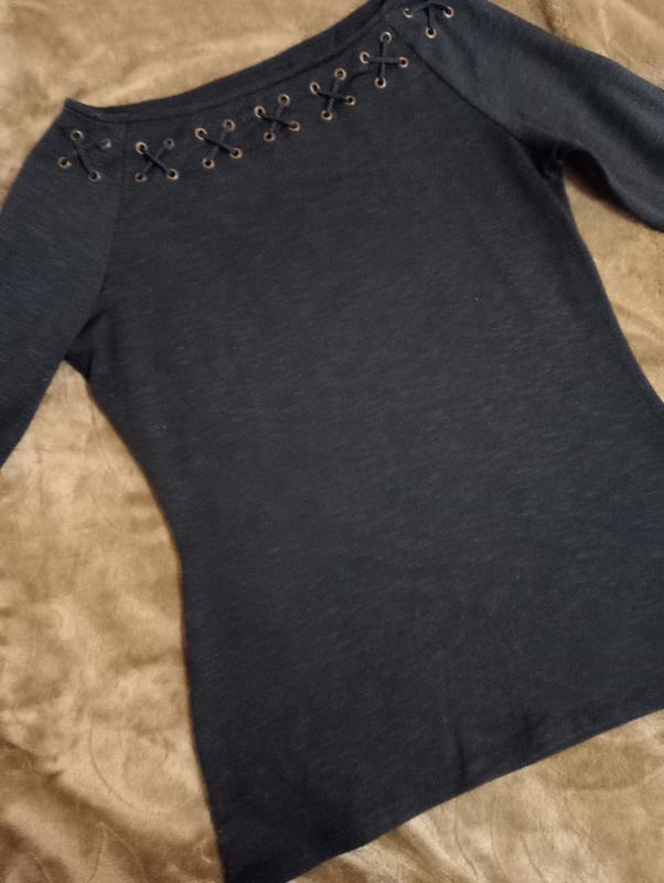 Темно-синя кофтинка. Цікавий верх на шнурівці. Тонка. Заміри на фото.