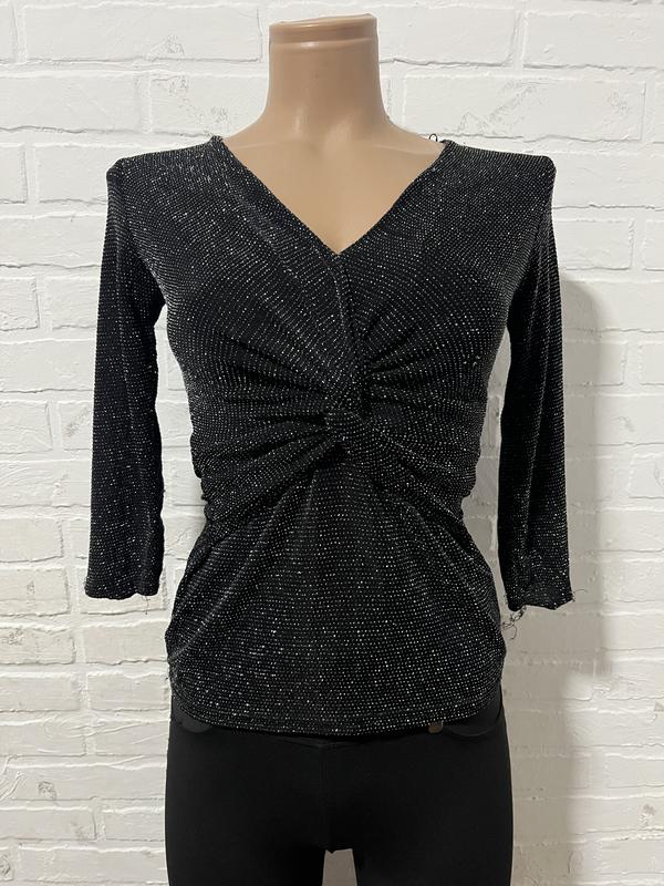 Стан дуже добрий,має декілька зацепок на тканині Тканина середньої щільності, добре тягнеться Напівобхват груди 37-48 Напівобхват талії 30-39 Напівобхват бедер 37-50 Плечи 32-42 Рукав 39 Довжина 55