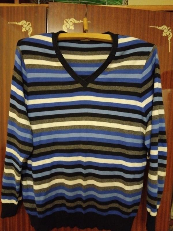Розмір укр 52-54: довжина-66см, по плечі-45см, поГ-56см, по низу-56см, д.рукава-60см/Б-22см. Теплий . У смужку. 1,2-фото зовні; 3,4-фото ізнанка.