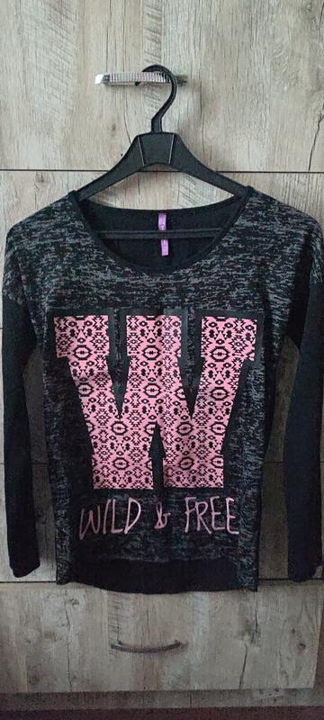Легенька кофта в хорошому стані, чорного кольору з принтом. Якість матеріалу хороша, без дефектів. Виробник By Gemo. ОГ - 92-95 см ОТ - 68-70 см ОС - до 98 см Довжина рукава - 58 см Довжина виробу - 61 см Вдівалася 2 раза, потім стала маленька.