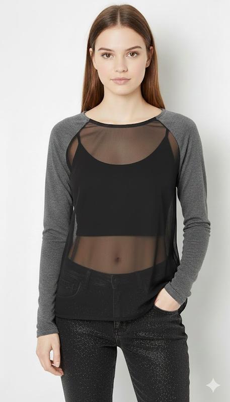 Шифонова прозора кофта реглан H&M розмір хс-с рукава з мягенького трикотажу можна носити як на майку/футболку, так і просто на гарний бюстгалтер від пахви до пахви 49 довжина від плеча 57 довжина рукава від горловини 75 стан ідеальне