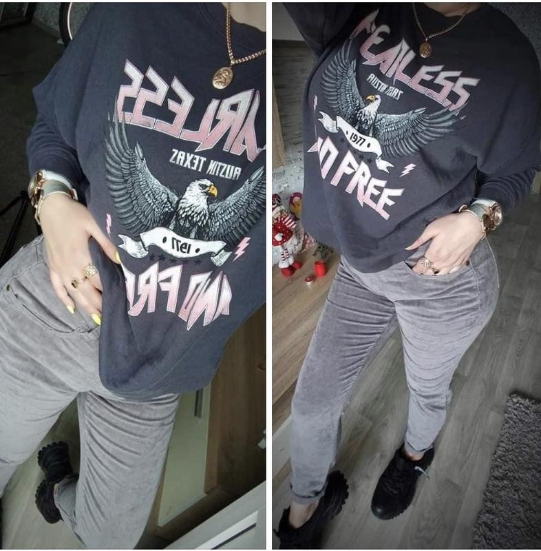 Стильний реглан, зручний, приємний на дотик, тканина чудово тягнеться. Заміри реглана: півобхват грудей 64 см, півобхват талії 58 см, ширина по низу 52 см, довжина реглана 60 см, довжина рукава від горловини 68 см. Розмір вказаний М, більшомірить, підійде на Л- ХЛ. Стан дуже добрий.