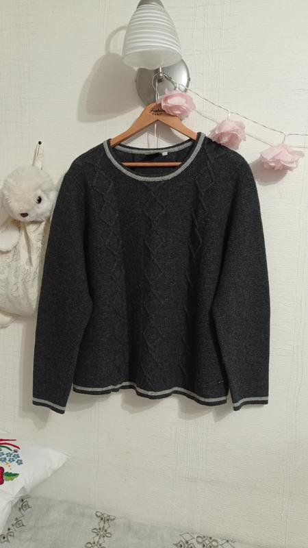 Изысканный джемпер от премиального немецкого бренда Hammerschmid, специализирующийся на качественном трикотаже в альпийском стиле. Вещь очень добротная, теплая и приятная на ощупь. Основные преимущества: Состав: 80% натуральная шерсть (Wolle), 20% полиамид для износостойкости. Свитер не теряет форму и прослужит годами. Дизайн: Спереди классическая вязка «ромбы» (араны). На спине интересная дизайнерская деталь - декоративный разрез, шлица, что добавляет модели элегантности и лучшей посадки по фигуре. Детали: На рукаве есть фирменный металлический логотип бренда. Горловина и края украшены контрастной светло-серой полоской. Состояние: Идеальный (как новый). Размер: XXL, подойдет для ценителя свободного кроя). О бренде: Hammerschmid (Германия) Это известный немецкий бренд премиального сегмента, который специализируется на традиционной альпийской одежде (стиль Tracten). Особенность: Бренд ценится при использовании натуральных материалов и высокое качество исполнения. Вещи Hammerschmid часто покупают ценители «тихой роскоши» или винтажного европейского стиля. Плечи - 45, рукав - 60, бицепс - 19, подмышками - 66, длина - 66.