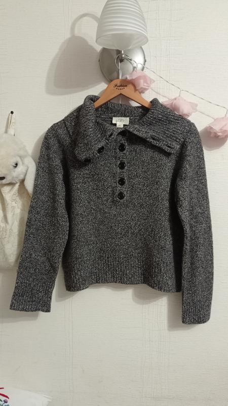 Дуже теплий, гарний і якісний. Вовна, ангора, кашемір. Не колючий, приємний тактильно. Чудово, що можна зробити високий комір, це хто не любить носити шарфи) Розмір пишуть L, але скоріше М, тож орієнтуйтесь на заміри. Плечі - 40, рукав - 60, під пахвами - 54, довжина - 55.
