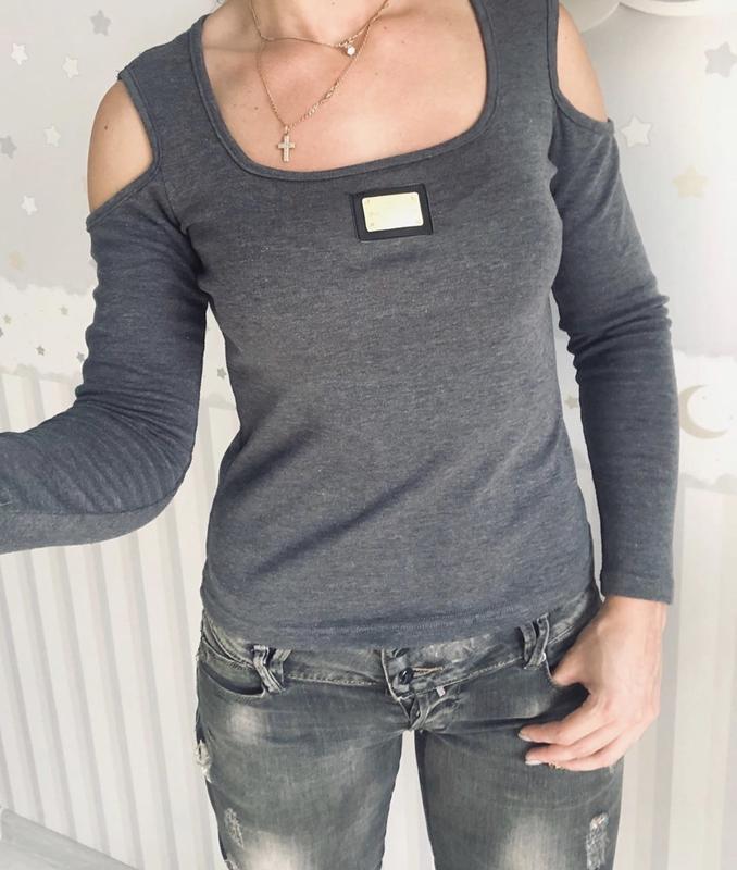 Кофта з відкритими плічками М'яка на дотик Розмір М. Тканина тягнеться Заміри : Довжина від плеча 57 см ПОГ 42-50см ПІТ 37-42см Рукав 58см від плеча