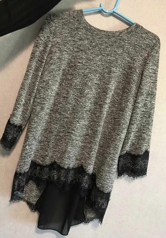 Нова кофта. Із круживом і шифоном. Заміри загальна довжина 71 см спереду трохи коротше 61 см, плечі 36 см, рукав-46 см