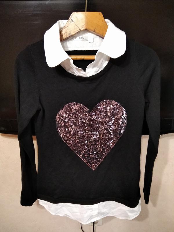 реглан з імітацією сорочки сердечко паєтки верх тонка в'язка комірець і низ коттон