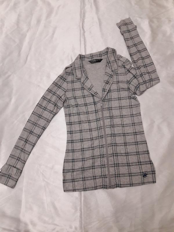 Поло сірого кольору в синю клітку розміру М, маломерит, реально на S. Бренд Beverly Hills Polo Club, США. ПОГ 43 см, внизу 41 см, довжина 60 см