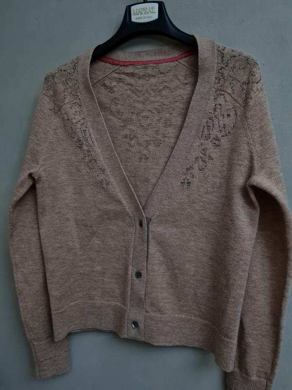 якісна красива кофта з ажурними елементами.бирка бренду та ін відсутні. стиль пошыва як у Marella тонка,щільна,у складі шерсть. мікс бежевого-кава-гірчичного красива ріпакова планка застібки,з переливчастими ґудзичками На жаль всі бирки відсутні. 👌Видно навіть по обробці-річ гарна,виглядає не дешево. 34 XS/36 S 💝Запрошую вас відвідати мій бутік,з брендовим одягом,взуттям...У гарному якості,в оригіналі! оплата на карту без повернення новапошта