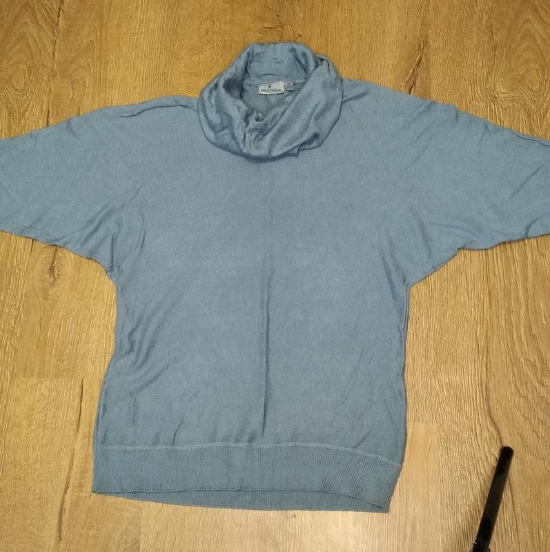 Тонкий красивий светр.Рукав-реглан, воріт зроблений хомутом і дуже красиво лежить . Не щільний, трохи тягнеться.