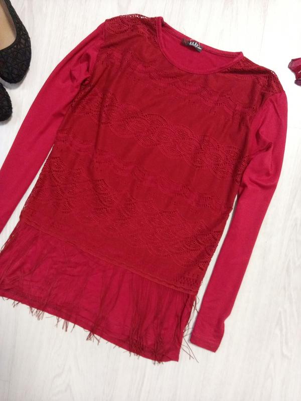 Кофточка ELIF Попереду нашито мереживо "вії" Колір бордовий Розмір йде на S ПОГ - 39 см ( тягнеться до 45 см ), рукав - 52 см, довжина - 60 см Стан ідеальне Якість супер Тканина схожа на віскозу з еластаном