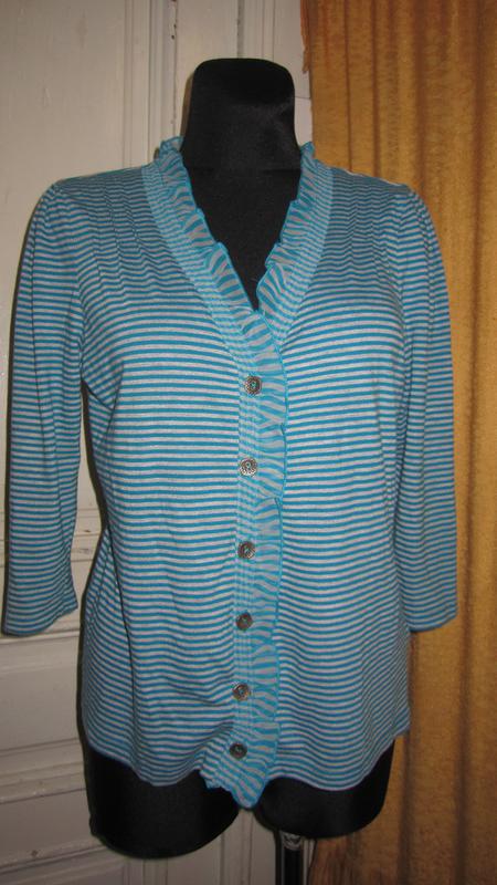 кофточка смугаста.50 бавовна.33 поліестер.17 віскоза.ПОГ 54.ПІТ 51.довжина 62.довжина рукава 46