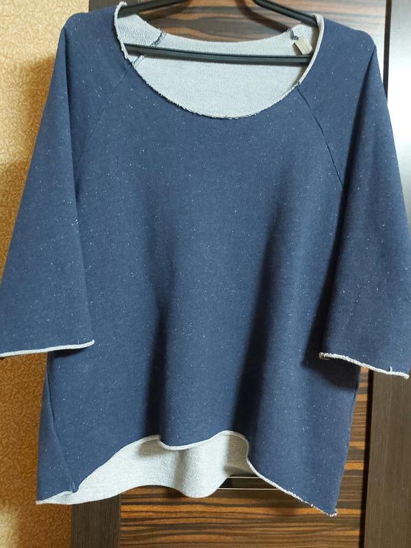 Продам кофту з блискучою ниткою. Ширина під рукавами 60, довжина спереду 56, ззаду 63 см