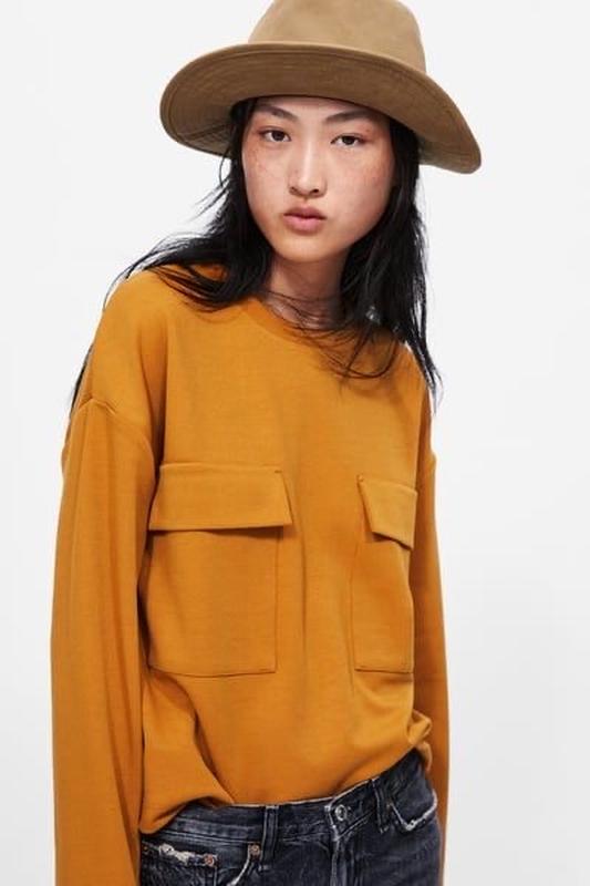 Кофта від ZARA прямого крою з накладними кишенями жовто-гірчично кольору розмір S, З грудей 51см, рукав 55см, довжина 54см, тканина 95%полістер,5%еластан