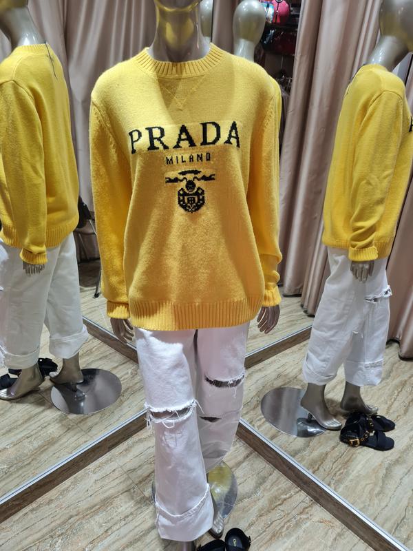 Дуже яскравий і неймовірно приємний светр. У колекції Prada насичений жовтий. 💛 Крім підбадьорливого кольору, у моделі є ще перевага, що розкривається при дотику. У светрі поєднали м'яку вовну та найніжніший кашемір. Такий виріб м'яко огортає теплом і створює відчуття особливого затишку.🥰 Так что не зволікай і готуйся до зимової прохолоди разом з нами❤️
