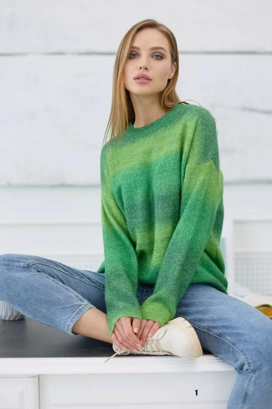 Параметры: Длина изделия от верхней точки плеча: S-XL= 67 см Длина рукава от горловины: S-XL= 73 см Тех. описание: Артикул: 6166.5126 Коллекция: Girls Band Категория: домашние / повседневные / городские/уличные Сезон: весна / осень-зима / демисезон Фасон: прямой / свободный Материал: высококачественная вязка Цвет: зеленый Декоративные элементы: градиентный принт полоской Горловина: круглый вырез Вид рукава: длинный, приспущенный Конструктивные элементы: спущенное плечо Комплектация: джемпер Уход за вещами: ручная стирка до 30° Информация: Модель в универсальном размере. Подходит на параметры с S по XL. Обратите внимание!: Цвет изделия может отличаться, учитывайте цветопередачу камеры и монитора. Принт: полоска