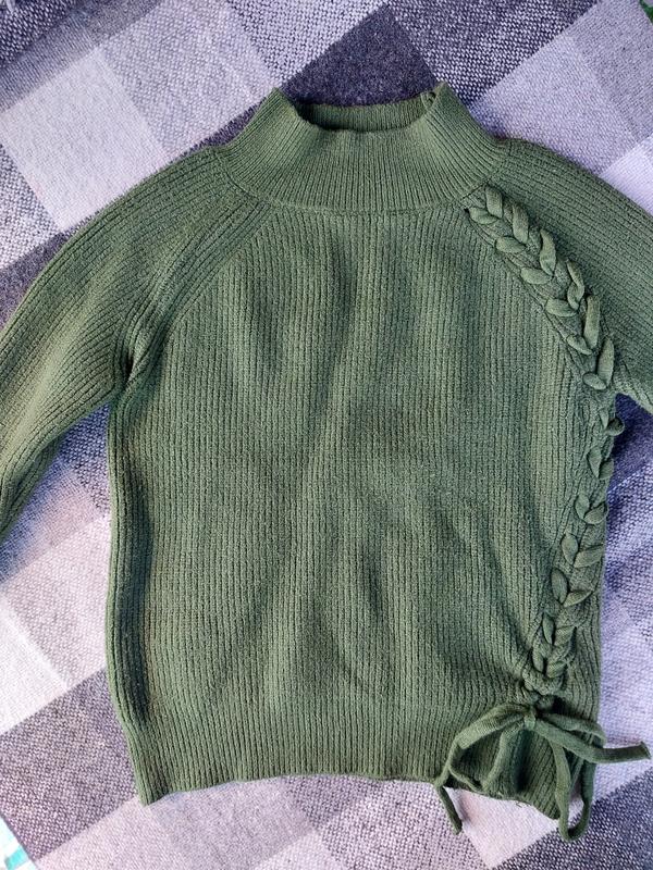 Тепленький жіночий светер, в гарному стані не ношений, розмір xs-s орієнтовно бірки немає ,колір хакі, заміри : довжина - 50 см , по грудях - 40 см , довжина рукава від горловини- 56 см