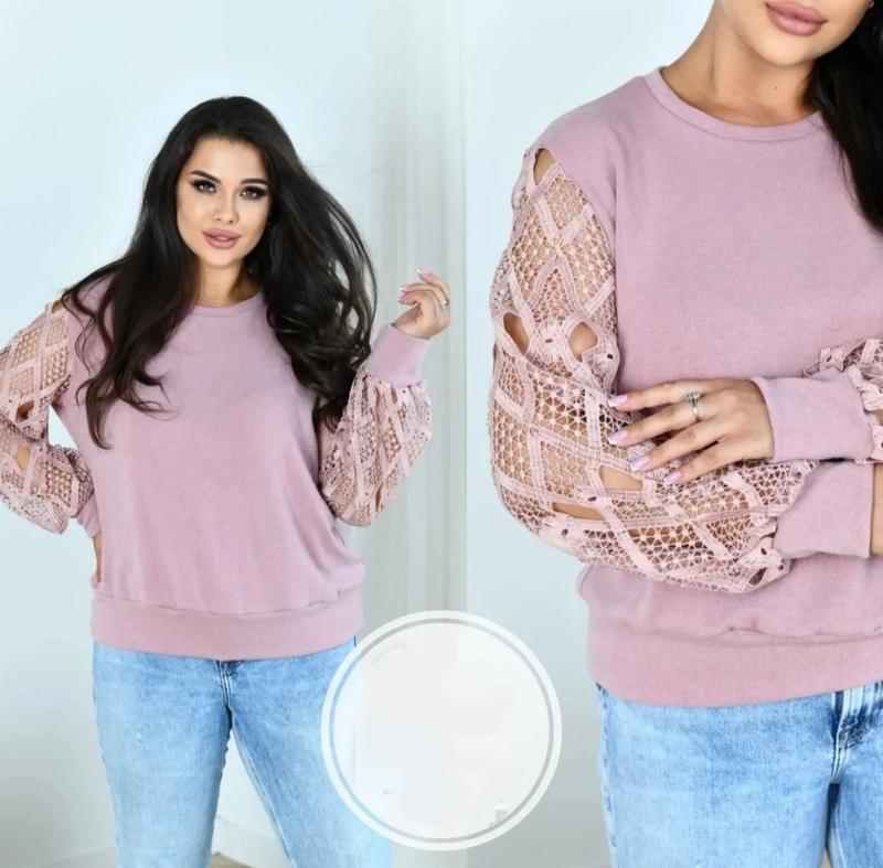 Мод 0163 Тканина: ангора Розмір: 48-50, 52-54, 56-58 Колір: рожевий, голубий, чорний Довжина светра: 60 см Довжина рукава: 55 см +5 см манжет Мереживо на рукавах може змінюватися.