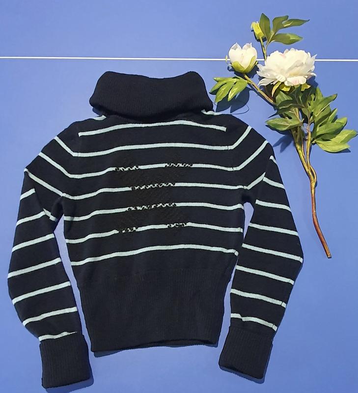 Свитер DKNY. Состояние как новое, но без этикетки. Материал: шерсть. Короткий, до талии. Трендовая полоска. Замеры: по плечам - 35 ПОГ - 43 ПОТ - 36 Рукав- 67 длина - 52 ( по не растянутому полотну)