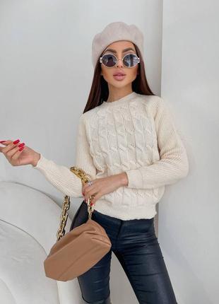 ♟♟♟Новинки 2022♟♟♟ в'язаний вовняний светр «Косичка» Фабрична якість 🔥склад: вовна, акрил • розмір універсал 42/46 • 5 кольорів: лаванда, чорний, беж Довжина 55 см Рукав реглан пог 49+ • Шиш