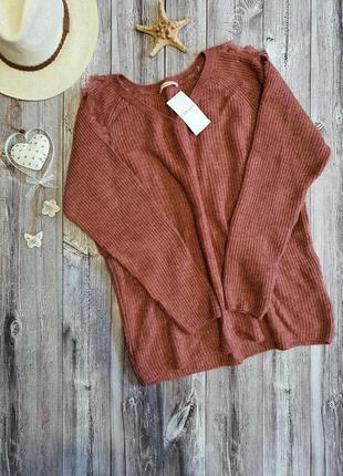 Жіночий сведр від Camaїeu Ніжні вирізи на плечах оздоблені мережевом (фото 3) 💫 Розмір L (розмір в розмір) Склад: 73% акрил, 27% поліамід До тіла не колиться 😉