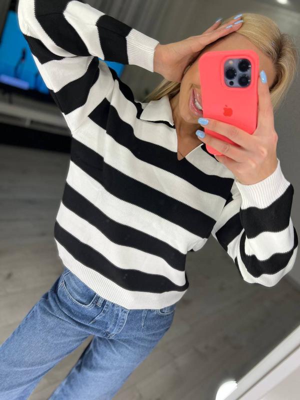 🟣🟣🟣Зустрічайте нашу новинку🟣🟣🟣 1877 🌲 в’язаний светр в смужку « Поло» акрил 2 кольори :малиново - білий , чорно - білий Розмір Універсал 42/ 48 Цена 699 грн 💸