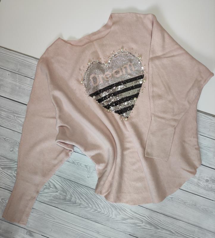 Свитер цвета пудры, рукава по типу "летучей мыши". Подойдёт на размер 44-48