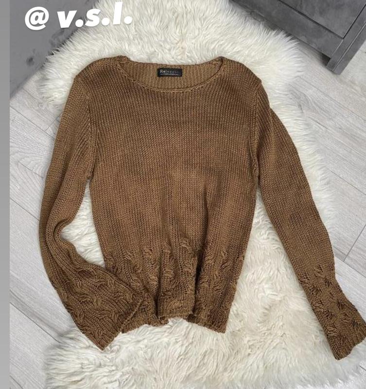 Фото На тілі немає)тягучий,щільність середня,рукава довгі-кльош знизу-в'язані візерунки,светр злегка вільний-стандартниі знизу також в'язані візерунки,в'язка заводська) Підійде на с м л європейський може бути як оверсайз оріентуйтесь по замірам/ Довжина 56-57 см/ Плечі 40-41 см/ Рукав 57 см/ Пог 44 см/ Знизу 46 см/ Продається як є без повернення/ Коричневий вільний светр і чорні джинси скінні — чудова формула для створення приємної і нехитрого наряду. Любиш експериментувати? Заверши образ бежевими замшевими ботильйони на шнурівці. Коричневий вільний светр і сіра вовняна спідниця-міді міцно закріпилися в гардеробі багатьох модниць, допомагаючи створювати карколомні і стильні ансамблі. Чудово тут будуть виглядати чорні шкіряні ботильйони. З чим носити коричневий вільний светр: Незважаючи на те, що це досить не складний ансамбль, цибулю з коричневого вільного светри і сірих класичних брюк продовжує підкорювати серця багатьох дівчат. Такий лук нескладно пристосувати до повсякденних справах, якщо надіти в поєднанні з ним коричневі високі кеди з щільної тканини.