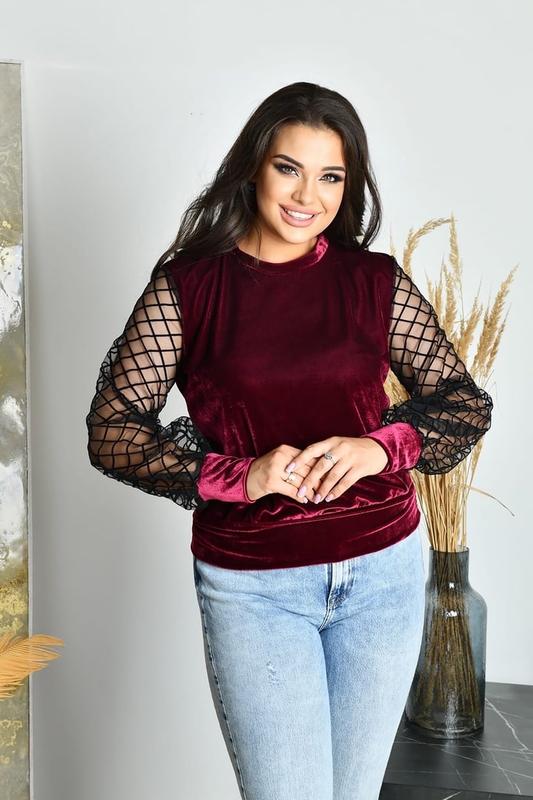 Светр арт. ivi. 0251 Тканина: велюр Колір: чорний, марсала, чорний Розмір: 48-50, 52-54, 56-58 Ціна 750 грн
