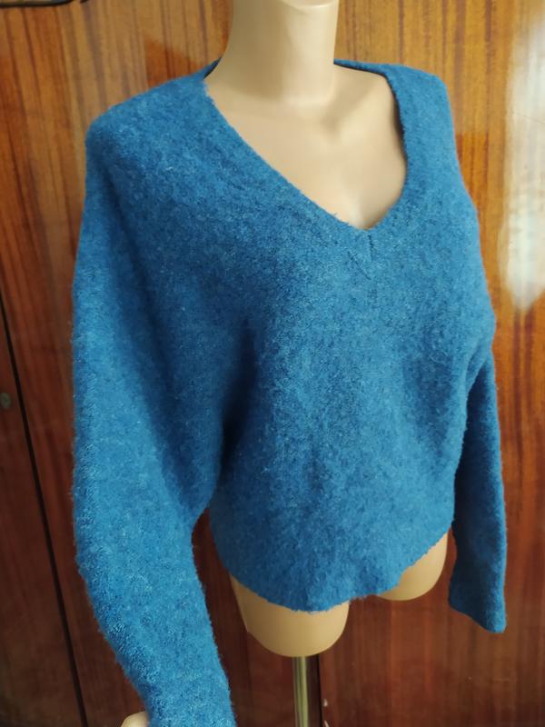 Матеріал: 65% поліестер, 25% акрил, 7% вовна, 3% еластан. Розмір XS. Одітий на манекен розміру М. Заміри: довжина 56см, ширина 46см, рукав від горловини 76см.