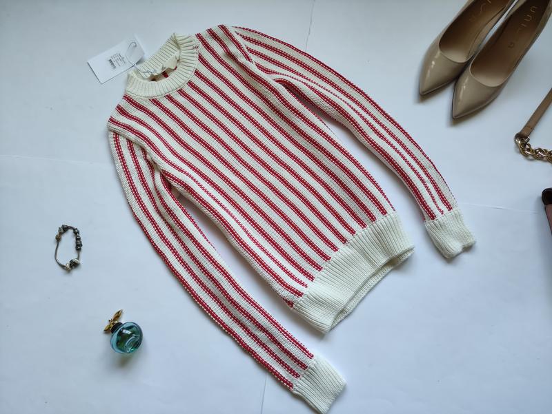Светр в полоску Basic Apparel. Розмір вказаний XS. Підійде на XS-S. ПОГ - 41, тягнеться до 48, ПОТ - 39, тягнеться до 44, ПОБ - 34, тягнеться до 44. Довжина 58. 100% котон
