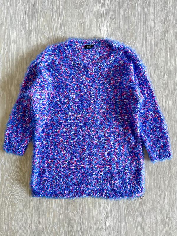 М’ягусенький, тепленький букльований светер F&F в ідеальному стані. Розмір 12/40. Довжина 64/70 см. ПОГ від 50 см (тягнеться). Рукав з напуском 41 см, з під пахви 35 см. Плечі 54 см. Стан ідеальний, як новий. Дуже тягнеться, приємний до тіла.