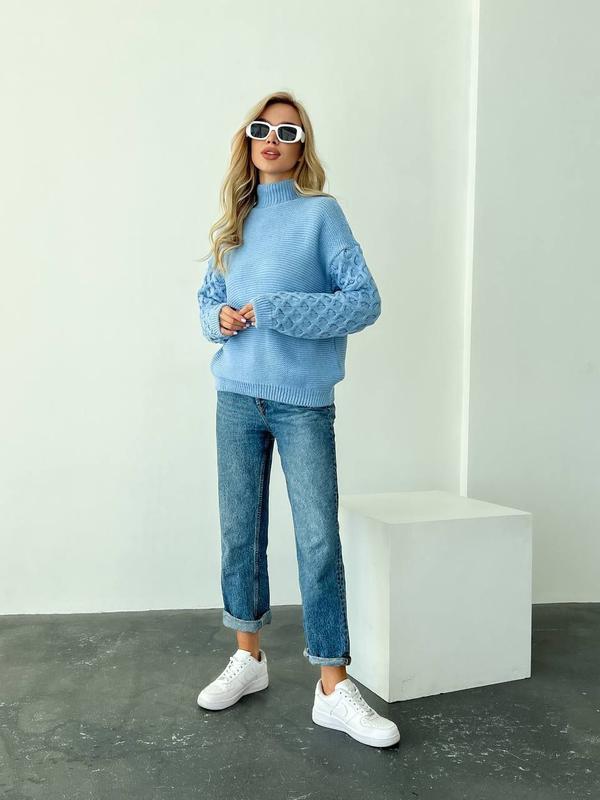 Вовняний светр з об’ємними рукавами. Горловина стійка 2368 🌿 ▪️Склад: 50% вовна, 50% акрил (Марс) ▪️Кольори: Кемел Зелений Світло-Рожевий Блакитний Молочний Електрик ▪️Розмір: 42-46 🏷 Ціна: 799 грн _____