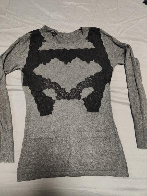 Тепла оригінальна кофта з мережевому спереду, спинка застібається на гудзики. Дуже тоненька, приємна до тіла. В складі є кашемір 5%, віскоза. Решту не пам'ятаю, бірку зрізала. Стан добрий. Продаю, бо стала замала.