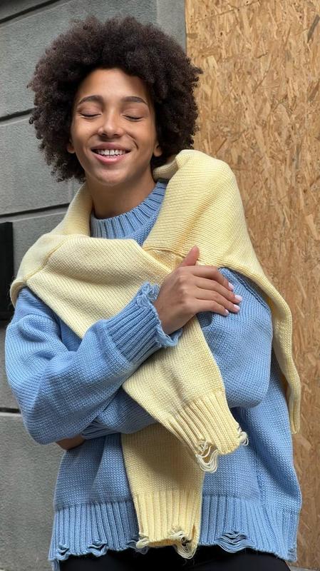 Стильна новинка❤️ светр зі спущеними петлями та ефектом потертості Вовна/акрил/еластан Ціна 740 грн М‘ягкі та комфортні❤️приємні до тіла Стиль.Якість.Комфорт Довжина 61 см Напівобхват грудей 61 см Рукав від горловини 74 см