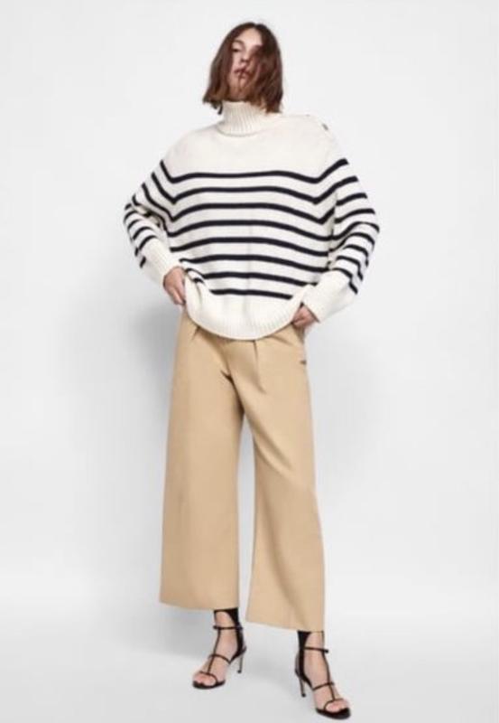 Смужки - це ідеальний спосіб додати в наряд більше одного кольору, будь то приглушений або яскравий. Вони також досить позачасові. Смужки не старіють, як інші тренди, які приходять і йдуть. Вони популярні уже не один рік, ви завжди побачите людей, що носять смужки хоча б один раз протягом певного сезону. Попередня колекція ZARA, оригінал, якість набагато краща, бірка бокова зрізана, але схоже що у складі є шерсть та альпака, чудова якість, дуже приємний, цупкий, тримає форму, не кошлатиться‼️. Базова річ у будь-якому гардеробі. Додасть шарму вашому образу. Стан ідеальний. Розмір S-M (буде і не невеличку L) Гарні ґудзики, можна розстібнути! Заміри: Довжина - 63 Пог — 63 Плечі спущені Рукав від горловини - 70 см