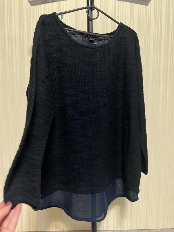 Гарна темно синя кофта з імітацією блузи. Нова, бірка зірвата. Розмір вказаний L. Рельєфна тканина.