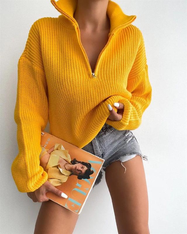 🔝Поло на змійці виробництво Туреччина🇹🇷 (70% akril/20%polyester/10%еlite) розмір oversize 42/48 довжина см рукав см погруддя до см колір: жовтий 720 грн